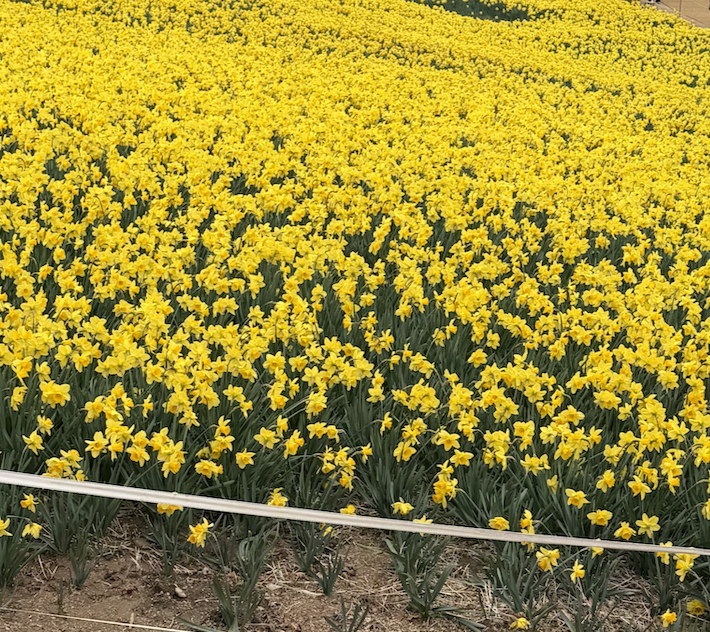 ① 노란 물결 '수선화 군락지' (3~4월 추천) 치즈랜드의 상징인 수선화는 매년 3월 중순부터 4월 초까지 만개합니다. 초록색 언덕을 배경으로 노란 수선화가 피어있는 산책로는 최고의 포토존입니다. 실시간 수선화 개화 상황 - 대부분 만개해있었습니다. (26년 04월 04일 방문)