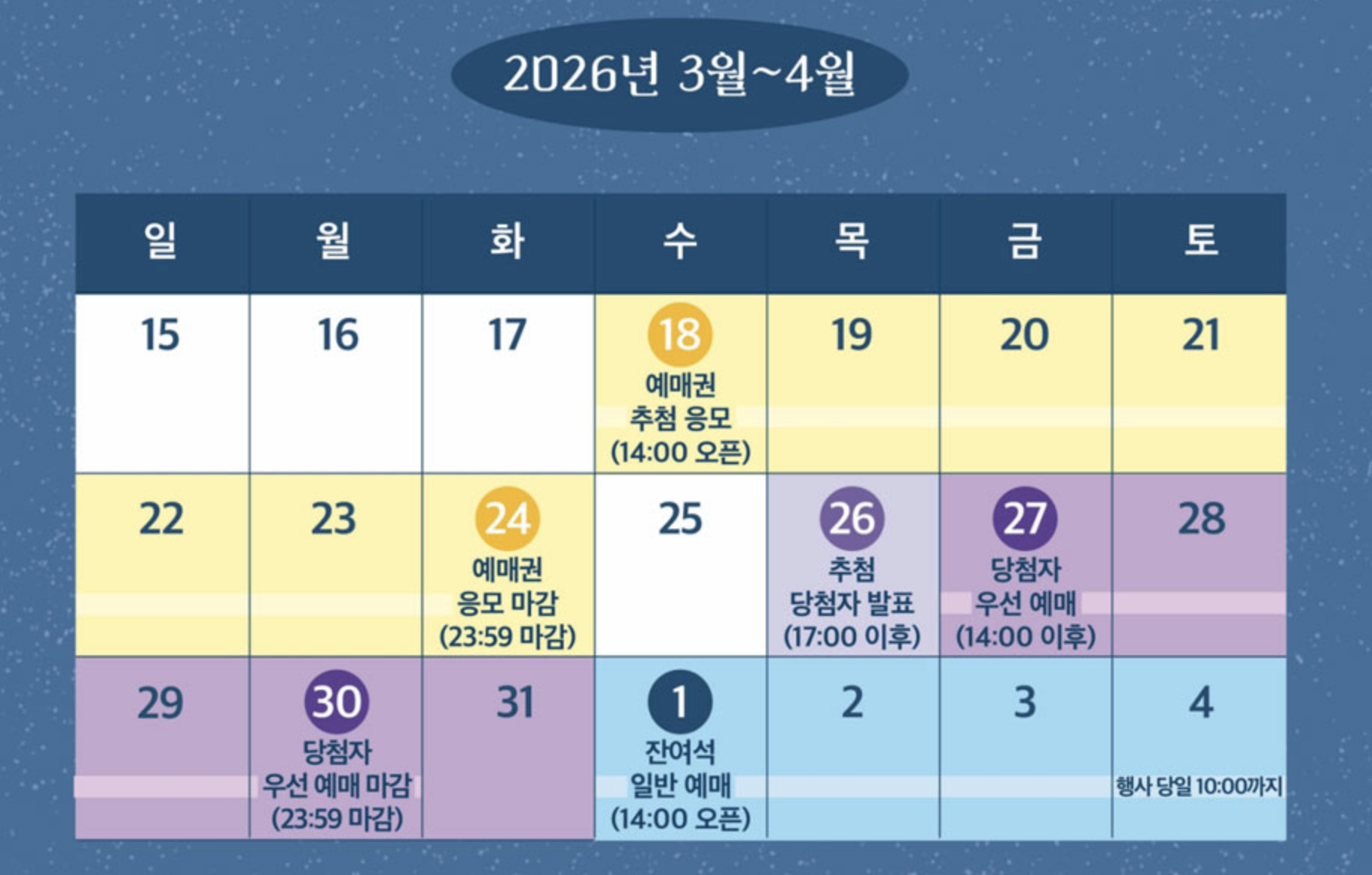 - 예매권 추첨 응모 : 2026. 3. 18.(수) 14:00 ~ 3. 24.(화) 23:59