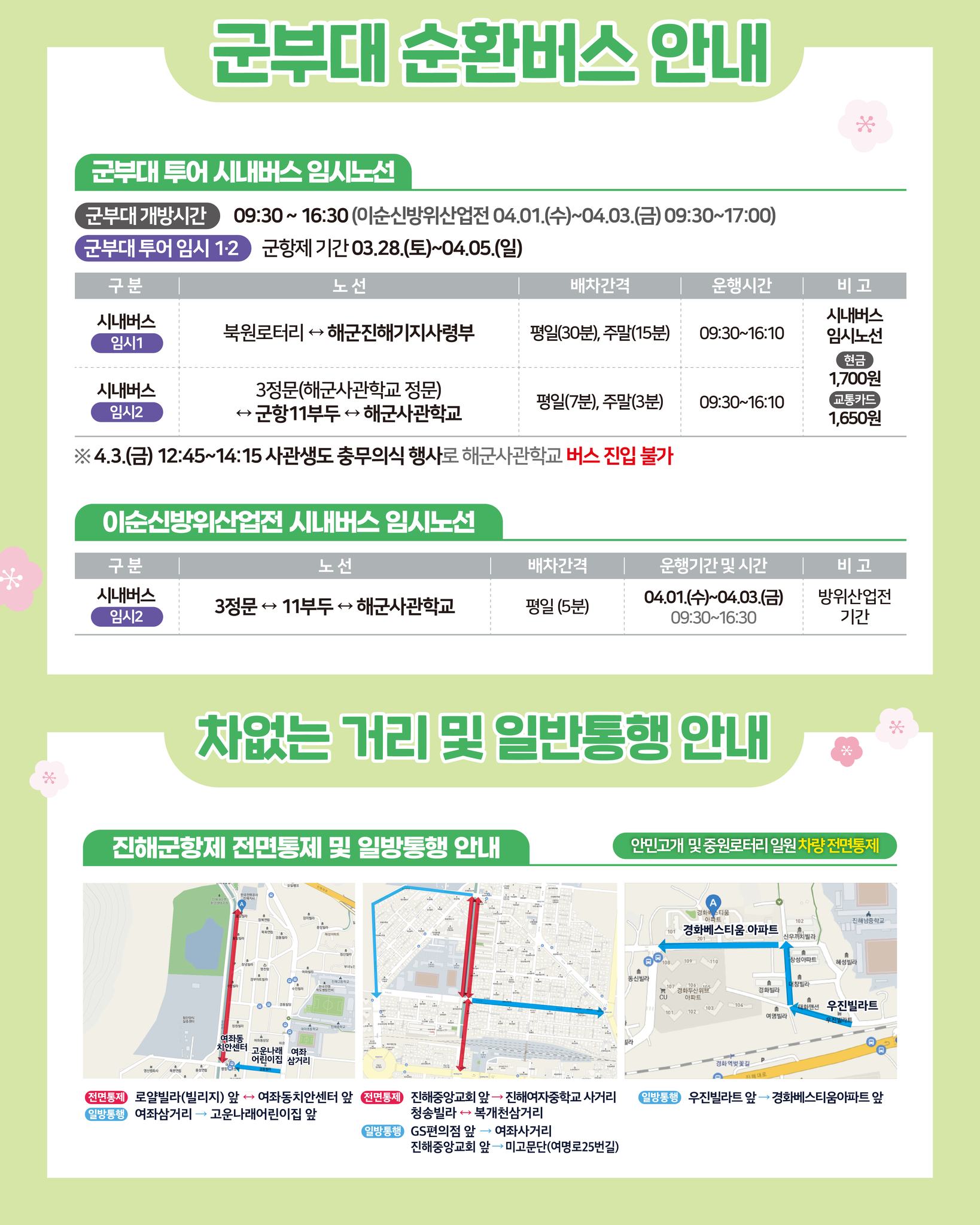 - 핵심 포인트: 36만 그루 왕벚나무의 꽃비와 해군 기지 개방 행사